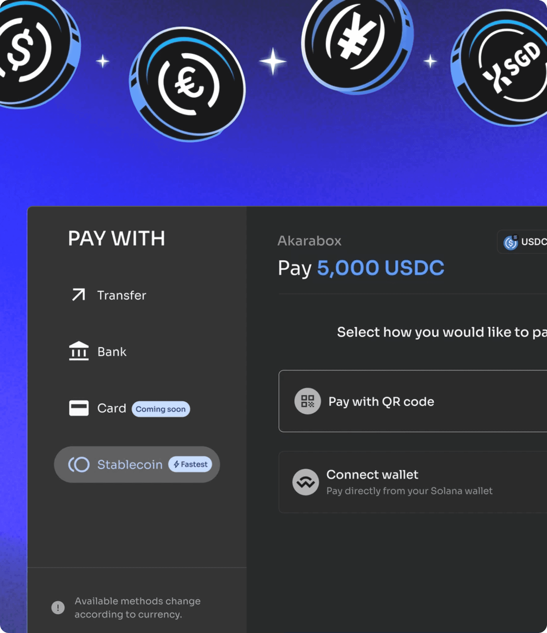 Checkout feature enabling merchants accept payments in fiat or stablecoins.