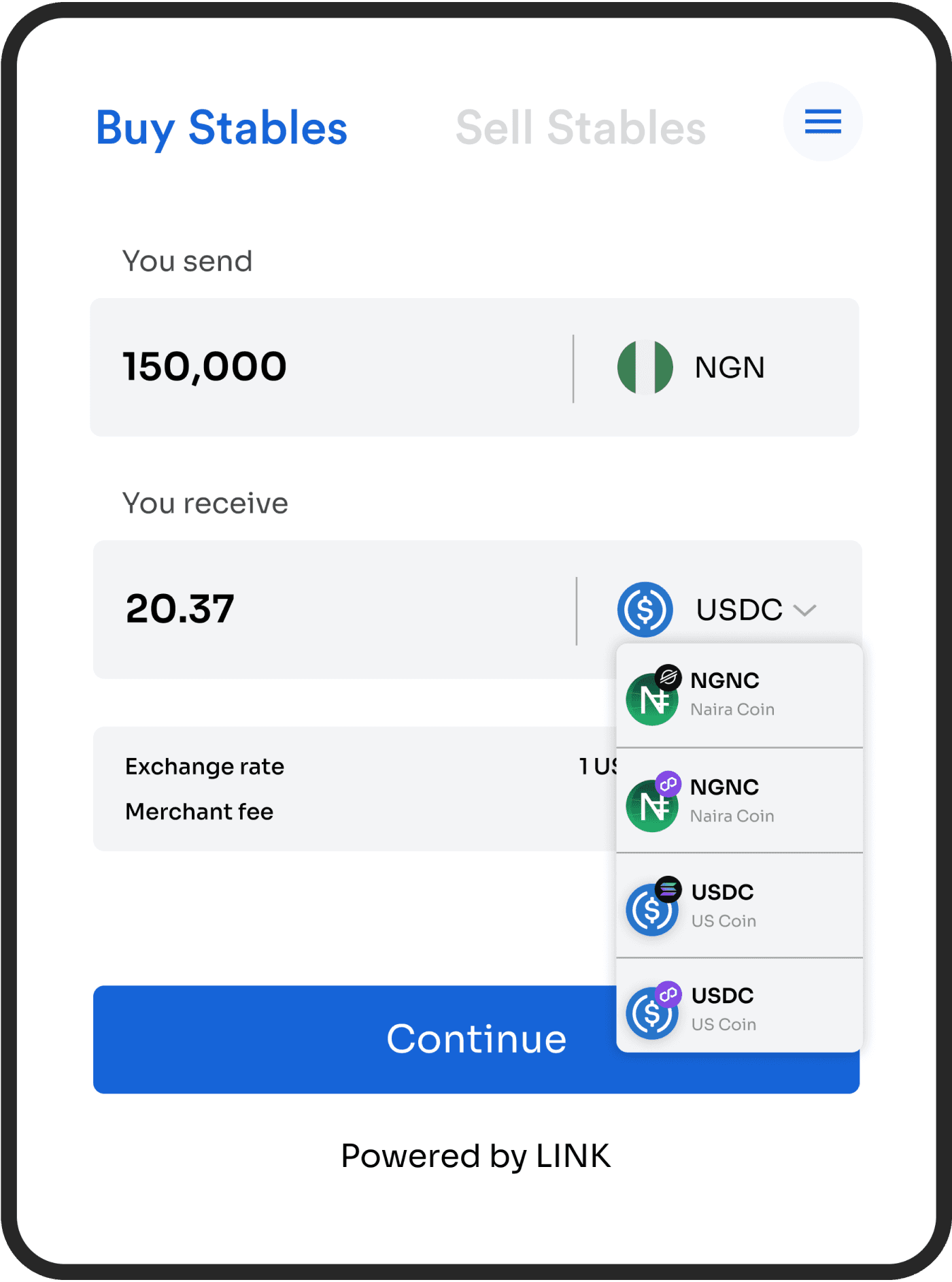 Stablecoin ramp that let’s users buy stablecoins with their local currency.